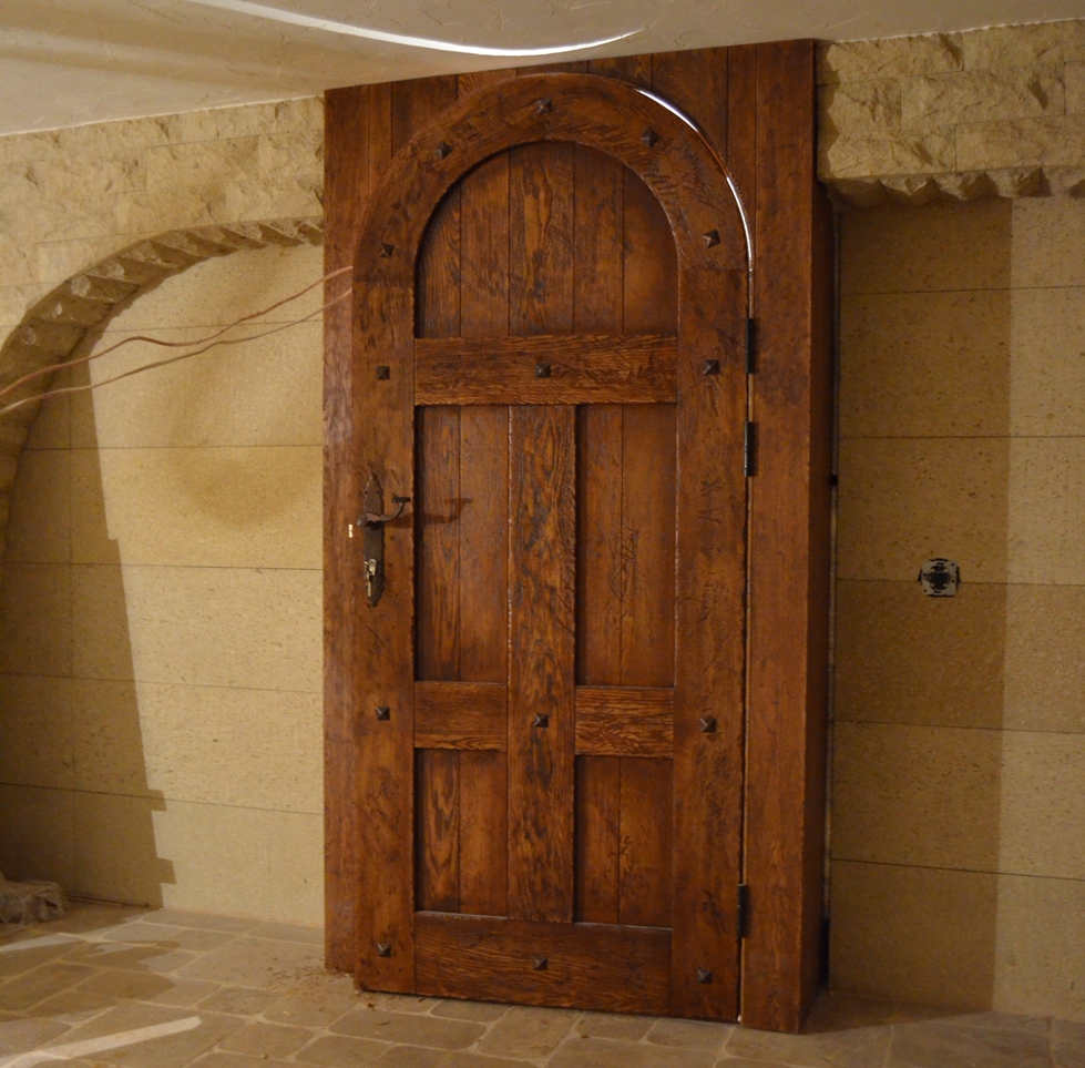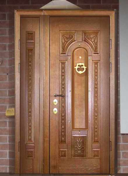 В качестве отделки используются самые разные материалы — МДФ, натуральный шпон, искусственная кожа, ламинат. Декорируются панели кованными решетками, литьем, филенками, резными элементами.